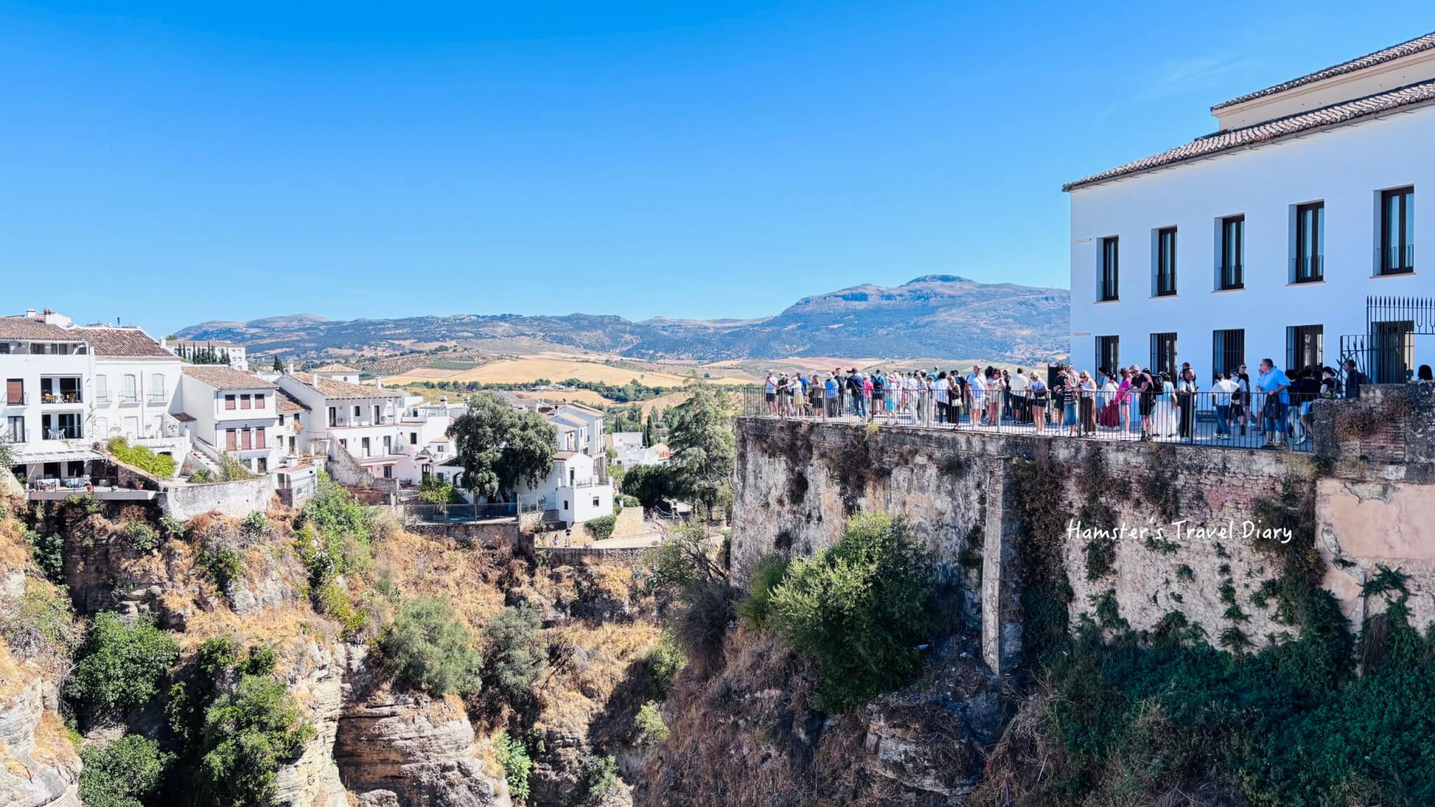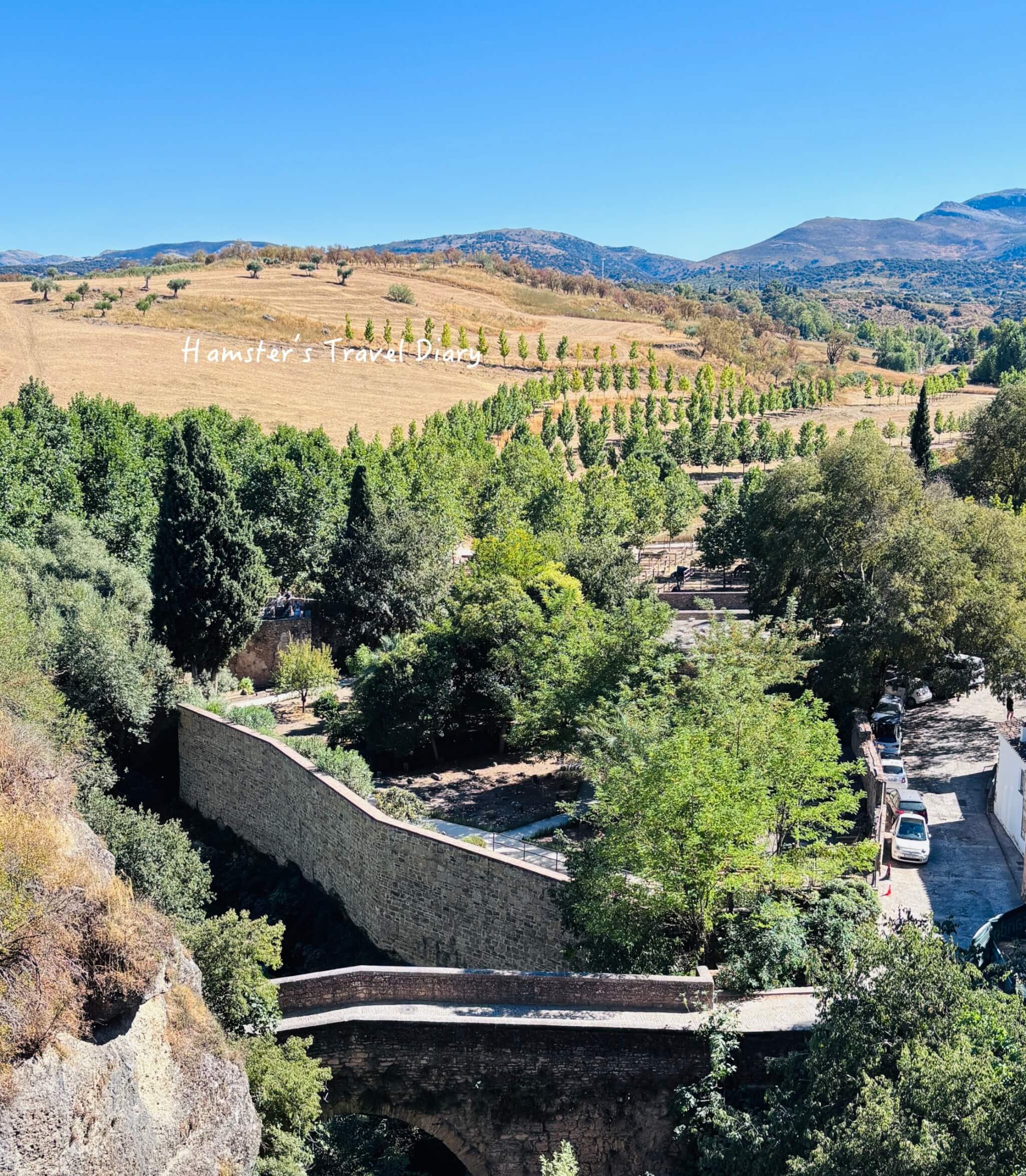 這個觀景台就在鬥牛場後方,是一個向外延伸出的涼亭平台,讓你像是懸浮在 120 公尺高的峽谷之上。在這邊可以欣賞到壯闊的安達魯西亞田園風光