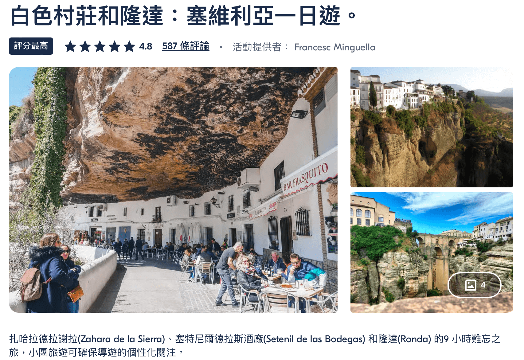 ✧為什麼選這個: 如果你自己搭巴士,一天要跑「隆達+塞特尼爾」幾乎不可能,因為小鎮間的公車極少
